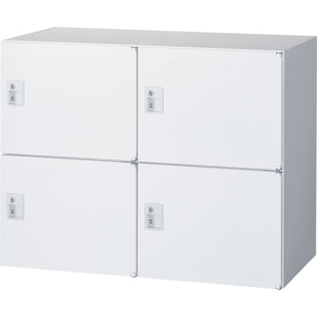 錠前は自動施錠ボタン錠。4人用のパーソナルボックスなので多様な働き方に対応出来る配線機能を有した個人収納ボックスになります。