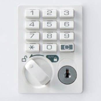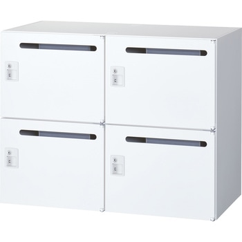 錠前は自動施錠ボタン錠。4人用のメールボックスなので多様な働き方に対応出来る配線機能を有した個人収納ボックスになります。