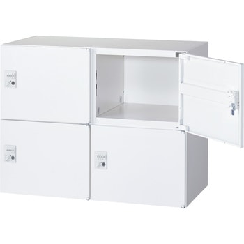 錠前はダイヤル錠。4人用のパーソナルボックスなので多様な働き方に対応出来る配線機能を有した個人収納ボックスになります。