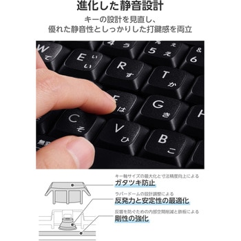 キーの軸、内部空間、ラバーなどあらゆる要素の設計を見直し、優れた静音性としっかりとした打鍵感を両立しました。