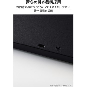 誤って水などの液体をキーボード上にこぼしても、本体背面の水抜き穴からすばやく排出できる排水機構を採用しています。