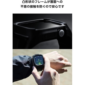 端末を不意の衝撃や傷、汚れから守る。強じんなポリカーボネート素材としなやかで弾力性のあるTPU(熱可塑性ポリウレタン)素材によるデュアルストラクチャー(2重構造)を採用した、Apple Watch用ZEROSHOCKバンパーケースです。