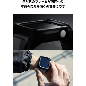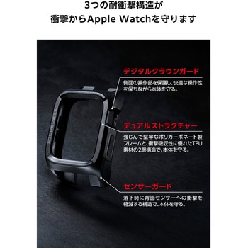 端末を不意の衝撃や傷、汚れから守る。強じんなポリカーボネート素材としなやかで弾力性のあるTPU(熱可塑性ポリウレタン)素材によるデュアルストラクチャー(2重構造)を採用した、Apple Watch用ZEROSHOCKケースです。