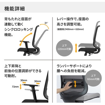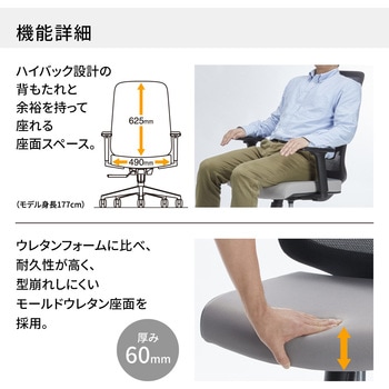 コクヨが提供するLamex(ラメックス)のメッシュチェア。ゆとりある座面と背もたれ設計により、長時間でも続く高い快適性を実現します。ロッキング強弱の調整と背もたれの固定(初期位置)が可能なシンクロロッキング機能を搭載しています。座面は耐久性と座り心地を両立するモールドウレタンにより心地よい座り心地を実現します。