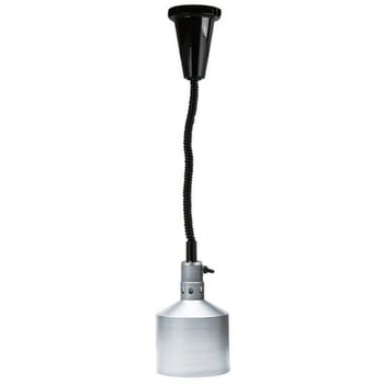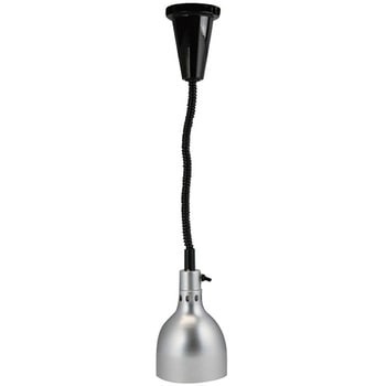 天井から吊るすタイプのランプウォーマーです。ランプの熱で料理を保温します。コードは長さの調整ができるフレキシブルタイプです。機器の電源を手元でON/OFFできる手元スイッチ付きです。取付部から傘先まで、全長約800~ 1,800mmまで伸縮します。引掛式プラグ付きです。