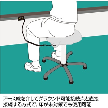 別売のアース線を使ってグラウンドに接続するタイプで、床が未対策でも接地経路を確保できます。