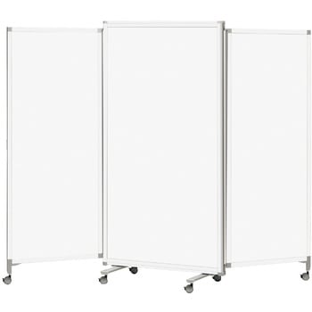 中からパネルを引き出す新しい発想のスクリーン。片面全面ホワイトボード、裏面クロス張りタイプ。中に2枚のパネルがインサートされているので、シチュエーションにあわせて1連から3連まで使えます。インナーパネルは両面90度ずつ回転可能で、スライドと回転を活かした新システムで自由自在なレイアウトを実現します。インナーパネルは任意の長さで引出し調整可能なため、従来のパネルではカバーできなかった半端な隙間を解消できます。本体はスタッキング可能で使用しないときはすっきり簡単に収納できます。