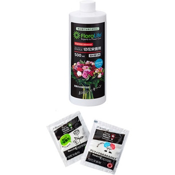 ご家庭でのお花の鑑賞期間を長くする栄養剤プロ用に開発されたエクスプレス(切花鮮度保持剤)の技術を応用した消費者用商品です。購入後の切花をご家庭で切り戻しをしなくても、スムーズに水分や栄養分等を吸収できるようにします。水の濁りを抑えて透明感を保ち、花を美しく長く咲かせます。夏場は特に効果絶大です。