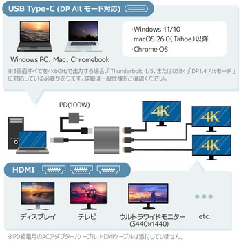 トリプルディスプレイアダプター(最大4K60Hz・PD対応)