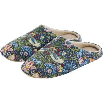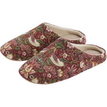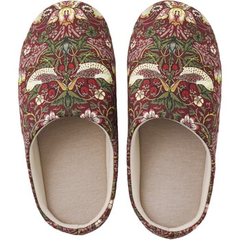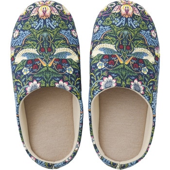 「いちご泥棒」は、19世紀にデザインされた、インディゴ抜染により赤や黄色といった藍色以外の糸を取り入れたテキスタイル。本商品のインソールは日本産業規格(JIST8101)による1100ニュートン耐踏抜き性試験クリア!災害時、釘や散乱したガラス片などの貫通を防ぎ足を保護します。つま先部は落下物から足元を守る芯材入り。つま先上がりでつまずきにくく、歩きやすい。普段に使えるおしゃれなデザインに「もしも」に備えられる機能をプラスしたルームシューズです。