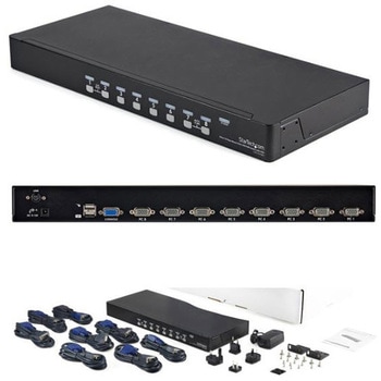 ラックマウント対応8ポートUSB KVMスイッチキット。8台のサーバ/PCに接続するためのケーブルとアクセサリをすべて同梱しており、セットアップが簡単ですぐに導入できる便利なKVMスイッチキットです。 このUSB KVMは、ワンセットのキーボード、マウス、ディスプレイで、最大8台までのUSB接続コンピュータを制御する信頼性の高いコンピュータ管理ツールを提供します。切り替え制御は、ホットキーコマンドまたはフロントパネルのプッシュボタンのどちらでも行うことができ、便利なオンスクリーン ディスプレイ設定機能も備えています。 1Uラックのキャビネットスペースに取り付けることも可能なため、サーバールームでの使用に適しています。複数のKVMスイッチをカスケード接続し、スイッチ1つで最大64台のコンピュータの制御が可能です。 StarTech.comでは3年間保証と無期限無料技術サポートを提供しています。