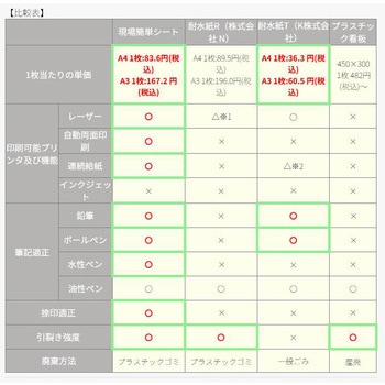 水に強くて、破れにくい紙!?リサイクルPETボトル100%使用 プリンター印刷も手書きもOK ラミネートいらずで楽々掲示! 忙しい仕事の合間に、手間が掛かり面倒な安全標識・表示プレート等の掲示物が「現場簡単シート」だったらレーザープリンターで印刷するだけで看板等が、早く・安く・自由に作成できます。