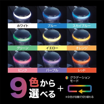 LEDの発光色を9色・グラデーションモード(9色がゆっくりと順番に自動で切り替わる)から選択することができます。