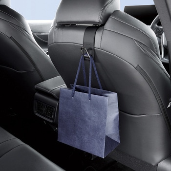 上質レザー調生地×ブラックメッキで質感も良く使いやすいフックです。幅広のバッグの取っ手でも引っ掛けやすい幅広L字フック形状です。ハンドバッグや買い物袋等の荷崩れを防止するのに便利なフックです。ヘッドレストのポールにそのまま引っ掛けるだけの簡単装着です。ポール型Φ12~14mmのポールタイプヘッドレストに対応します。耐荷重:3kg