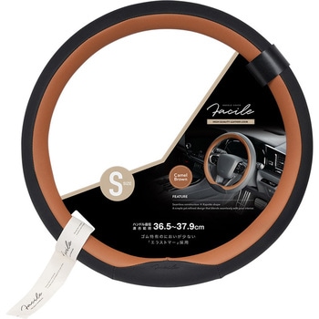 上質レザー調×キャメルブラウンカラーで、シームレスに縫い合わせた高級感のあるデザインのハンドルカバーです。縫い目がないすっきり仕上げです。リアルな質感と握った瞬間にわかる使いやすさです。においが少なく装着しやすい素材[エラストマー]を採用しています。適合サイズ:ハンドル直径36.5~37.9cm