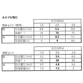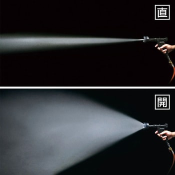 従来品の吐出量が増え、作業効率がUPしました。本体後方のダイヤルで霧の拡散・直射の切り替えが可能です。240gと軽量なため腕が疲れにくく扱いやすいです。高圧で使用してもカバーが握りやすいです。フード部にポリカーボネートを使用しているので耐衝撃性、耐候性が高いです。Φ2.0噴板が標準で取り付けてありますが、付属噴板Φ1.5に交換して使用することも可能です。