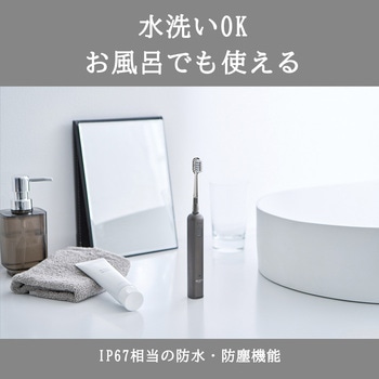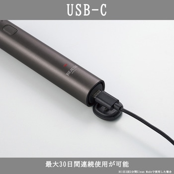 アルマイト処理(アルミ陽極酸化処理)した精悍な質感がメンズの所有欲を満たします。振動+物理首振りでやさしくしっかり磨く。磨き方が選べる3つのケアモードを搭載。(ソフト・クリーン・ディープ)水洗いOK、お風呂でも使える。最大30日間連続使用が可能。※1日2回2分間、クリーンモードで使用した場合その他機能:歯磨きタイマー・口腔エリア切替お知らせ・電池残量表示・トラベルロック