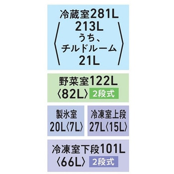 乾燥を防ぐ「うるおい冷気」なら庫内質とを約85%に保ち、食材をしっとり柔らかく美味しい状態のままで保存します。また、チルドルームは見やすく探しやすい2段式。上段と下段で食材を分けて保存することも可能です。