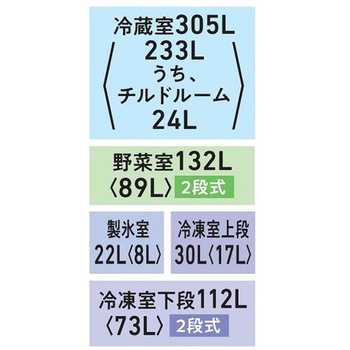 乾燥を防ぐ「うるおい冷気」なら庫内質とを約85%に保ち、食材をしっとり柔らかく美味しい状態のままで保存します。また、チルドルームは速鮮チルドモードと解凍モードを備え、上段と下段で食材を分けて保存することが可能です。
