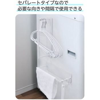 洗濯機横の隙間を有効活用!さまざまなサイズのハンガーをまとめて収納できる、マグネット式ハンガーラックです。高さのあるハンガーやスペースに合わせて、2段に分けて収納可能。横向きにして、スプレーボトルなどを掛けるフックとしても使えます。