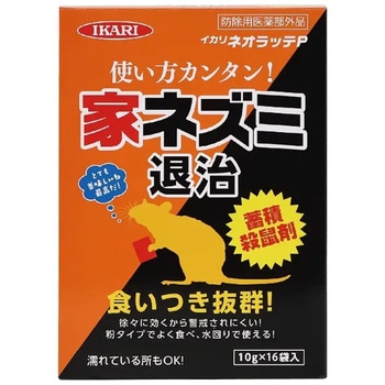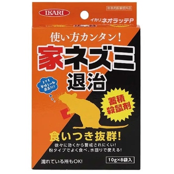 粉タイプの殺鼠剤です。小麦粉等の嗜好物が入っていますので、ネズミが好んで食べます。ジワジワと効果を発揮し、警戒心の強いネズミも駆除します。