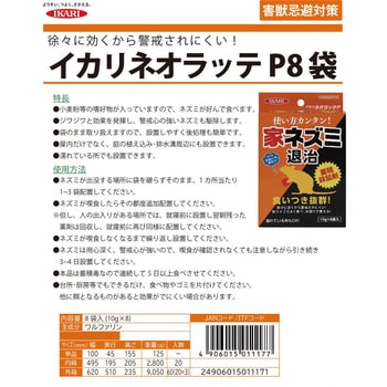 ※使用前に必ずラベルを読み、十分に理解した上で使用すること。ネズミが出没する場所に袋を破らずそのまま、1 カ所当たり1~3 袋配置してください。