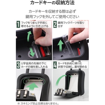 鍵などの貴重品の受け渡しや保管に使う、セキュリティキーボックス。カードキーの収納も可能なサイズです。