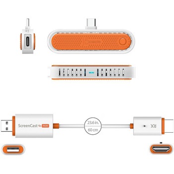 USB-C送信機を接続するだけで、映像出力と充電ポートからの7.5W給電を同時に行えます。