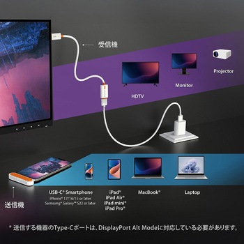 ※ご注意:iPhone 16e/17e/iPhone AirはDP Alt Mode非対応です。