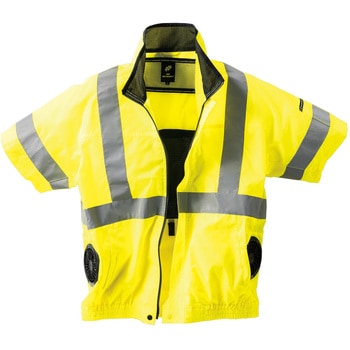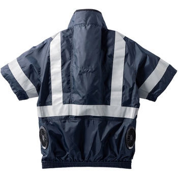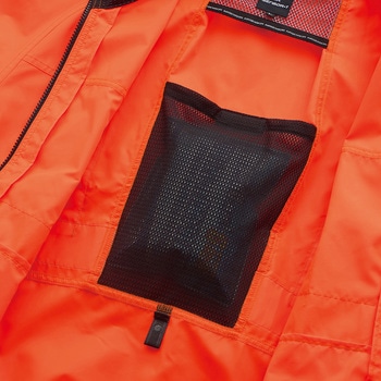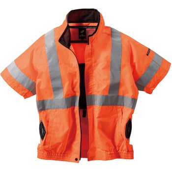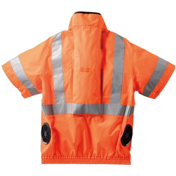 JIS T-8127 高視認性安全服 Class2(オレンジのみ)を取得した半袖ジャンパーです。前後および腕部に反射テープを施すことで、視認性をさらに高めています。また、暑さ対策としてサイドファン仕様を採用し、保冷剤ポケットも装備しています。