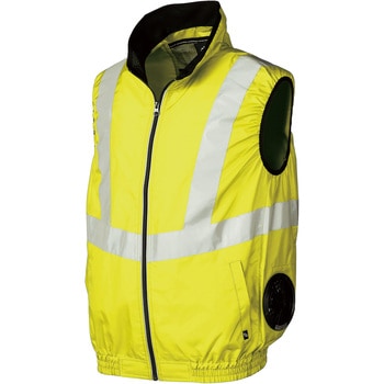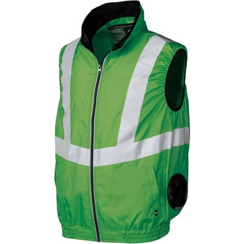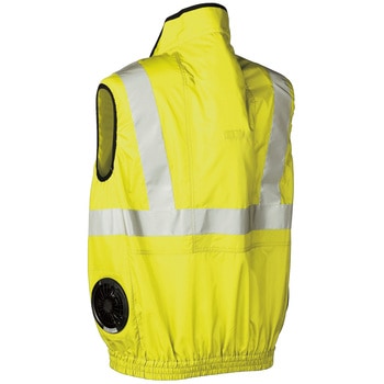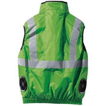 反射テープを採用し昼間および夜間の視認性をアップする高視認性安全ベストです。、サイドファン、背中内側の保冷剤用ポケットで熱中症対策にも効果的です。