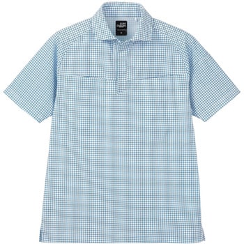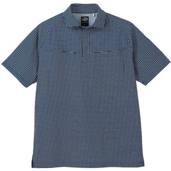 落ち着いた格子柄のデザインが、清潔感のある印象を演出します。軽くて通気性やストレッチ性に優れた、制電糸入りの快適素材を採用した半袖ポロです。