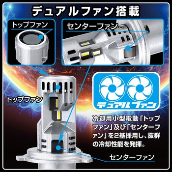 バルブ小型化と明るさUPのため、温度マネージメントを強化。「トップ・ファン」+「センター・ファン」の【デュアルファン】を搭載。
