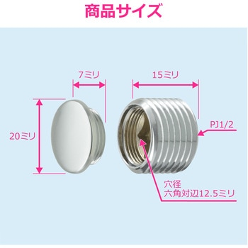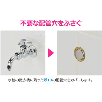 ネジ部分にシールテープを巻付けて、不要な配管の穴にねじ込んで止水します。壁面とフラットになるので、上から壁紙を貼っても目立ちません。呼13の水栓穴用です。対辺12ミリの六角スパナ(レンチ)でねじ込みます。水回りの修繕やリフォームなどを行う際の補修部材として便利です。取付ネジサイズ:PJ1/2工事業者様(法人)向けの複数売り商品です。