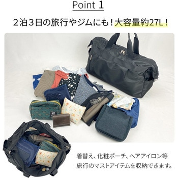 2泊3日の旅行にも対応する大容量約27Lのボストンバッグ
