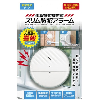 貼り付けるだけの簡単防犯アラームです。幅は約0.9cmの薄型でコンパクト。ドアや窓の衝撃を感知すると、125db大音量ブザーで不審者を威嚇します。あまり使っていない部屋のドアや窓の防犯におすすめです。
