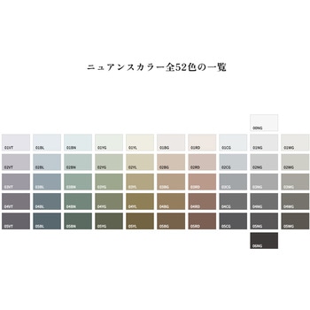 内装・外装問わず、空間デザインの中で多様なアイテムと美しく調和するニュアンスカラー52色をラインナップ。