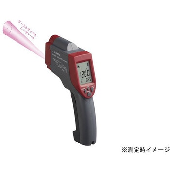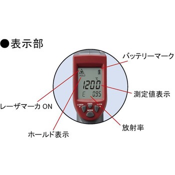 その他【レーザマーカ】赤色サークルレーザ(クラス2レーザ製品)波長:650nm/出力:1mW以下消費生活用製品安全法 携帯用レーザ応用装置に適合(PSCマーク付き)付属品ネックストラップ 1本/ハードケース 1個/取扱説明書 1部/単4形アルカリ電池 2本(お試し用)材質ABS、シリコン寸法(mm)48×154×212測定範囲-60.0~1550℃質量(g)約350(電池含む)電源単4形電池 2本測定精度±2℃または±2% readingの大きい方:0℃以上/±(2℃+5% reading):0℃未満(条件)測定環境温度23±3℃、放射率0.95にて分解能0.1℃:-60.0~999.9℃/1℃:上記以外応答時間約1秒(90%応答)測定波長(μm)8~14距離係数D:S=約35:1(D=測定距離、S=測定領域直径)検出素子サーモパイル使用環境0~50℃、85%rh以下(結露なきこと)放射率設定範囲0.10~1.00(0.01単位で設定可能)温度係数±0.2℃/℃(条件)測定環境温度23±3℃以外のとき光学系Siレンズ内容量1台