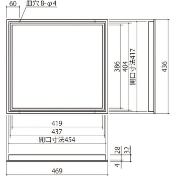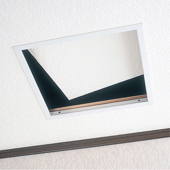 建物内部の天井に取付ける気密性に優れた点検口で、断熱効果の高い施工ができます。2×4住宅にもジャストフィットします。気密性能A4相当(JIS A 4702による)石こうボードと厚さ90mmの断熱材を一体化したNDパネル付です。取付図のように厚さ90mmのロックウールを載せることで、仕上りも良く、高気密、高断熱を発揮します。本体の内周部に気密用のパッキン材を設けました。フレームは室内使用にマッチしたホワイト色です。ツーバイフォー住宅にもスッキリ収まります。