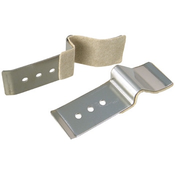 接着剤で貼り付けたケーシングや天井回り縁・巾木を接着剤が乾燥し密着するまでの間、はがれたり浮き上がったりしないよう、一時的に押えておく金具です。取付けと取外しを釘またはビス1本で行えるので作業が容易です。ステンレスバネ材を使用しておりますので耐食性に優れ繰返し使用できます。化粧材との接着面には、フェルトを貼り付けてありますので、化粧材に傷をつけません。