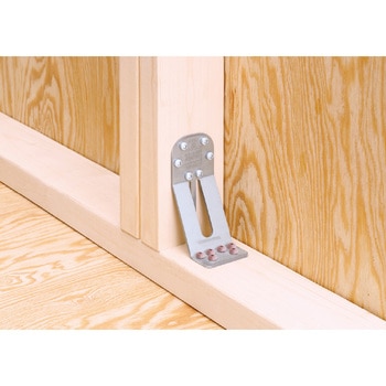 ツーバイフォー工法で、横架材(土台、床根太)とたて枠の接合に使用し、ホールダウン15kN用金物相当の耐力を有する金物です。構造躯体内部で使用ができ、ビスのみで簡単に施工できます。帯金物やホールダウン金物(15kNまで)で施工しづらい部分での使用が可能です。
