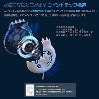 「エアモン2 プレミアムS」は、特に暑い季節の外出時に活躍する、ファン付き送風クーリングシートの最上位モデルです。表面はシリコンPU(PUレザー)素材を採用し、汗や飲みこぼしもサッと拭き取れる防汚仕様。背中全体に風を届ける立体エアフロー構造で、背中から腰まわりまでしっかり送風し、ムレを軽減します。静音ファン搭載、ファンは取り外し可能でお手入れ簡単。モバイルバッテリー対応しており、スマートフォン専用アプリによる無線操作で、風量調整やモード変更、タイマー設定、電源操作も手元で行えます。