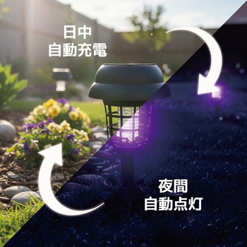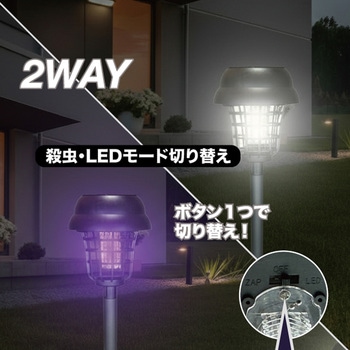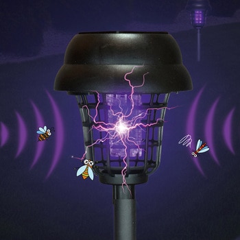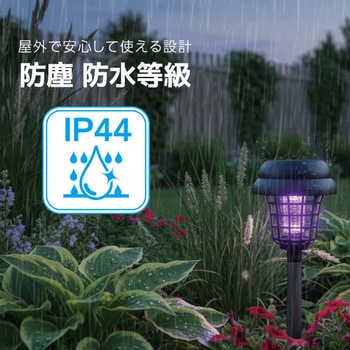 ブルーライトで誘引してバチっと撃退!LEDライトとしてもご使用いただける屋外設置用ライトです。ボタンひとつで簡単に殺虫モードとLEDライトモードに切り替えが可能日中は太陽光で自動充電、夜間自動点灯で効果を発揮します。挿すだけで簡単に設置可能防塵防水等級IP44相当で屋外でも安心してご使用いただけます。