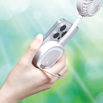 お手持ちのスマートフォンにぴたっと装着、いつでもどこでもハンズフリーでご使用いただけるハンディファンです。