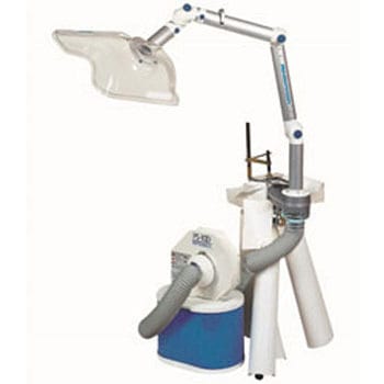 活性炭入り卓上パーソナルタイプです。3箇所の関節と、テーブル取付部の回転機構で、フードを作業に応じて自由に移動することができ、集塵効果のアップと、設置スペースの固定化を防ぎます。粉塵、ヒュームを除去するHRPAフィルタと活性炭フィルタの2重構造で粉塵、ヒューム、臭いをシャットアウトします。粉塵はフィルタの内側に集塵され、手を汚さずしかも再飛散させる事なく処理できます。肺に有害とされる0.3μ以上の微粉塵を99.97%以上除去する高性能フィルタを採用(DOPテスト)