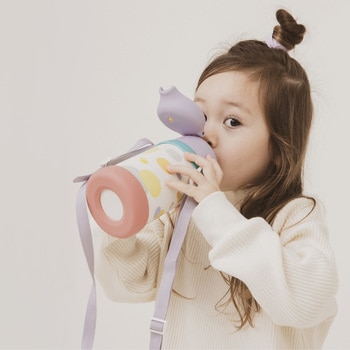 お子様の成長に寄り添うステップアップボトル扱いやすくかさばらない片手ハンドルと、持ち運びに便利な取り外しできるショルダーベルト付き真空断熱構造で飲料の温度を長時間キープストロー使用時はワンタッチでらくらくオーブン