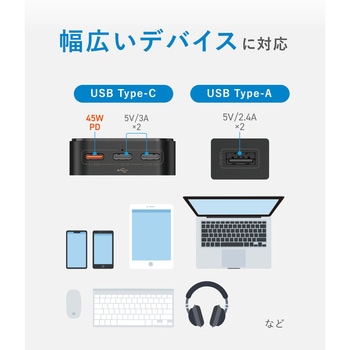 45W(単独接続時)PD対応のUSB Type-C 1口