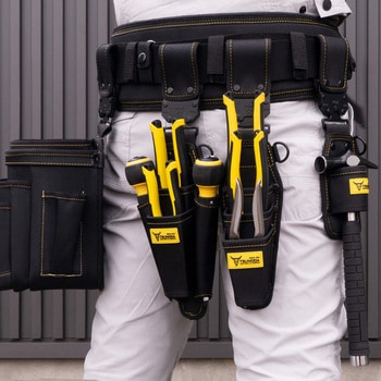 折れにくいプレート内蔵 高強度構造、工具の抜き差しに引っ掛からないスムージング加工。【ワンタッチ組み替えバックル】作業に応じてカンタンに工具差しを外す・組み替えられる新機構バックル。【誤解除防止レバー】誤解除による落下防止のためバックルを押し込まないと現れない解除レバー。(特許申請中)【耐荷重200kgの高強度バックル】耐久試験後も問題なく機能。※2010N≒205kg ※耐荷重はバックル本体のみ