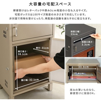宅配用の収納が1段と宅配用としても使える大きめのポストが1段ありますので、大きい荷物と小さめの荷物であれば、配達が被っても安心です。
