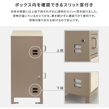 スリット窓が2段ともついていますので、扉を開けなくても荷物の確認が可能です。